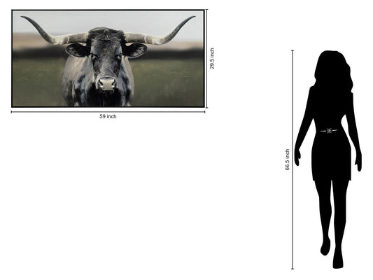 "Majestic Longhorn" Hand-Embellished Canvas In Frame - Gray / White / Green