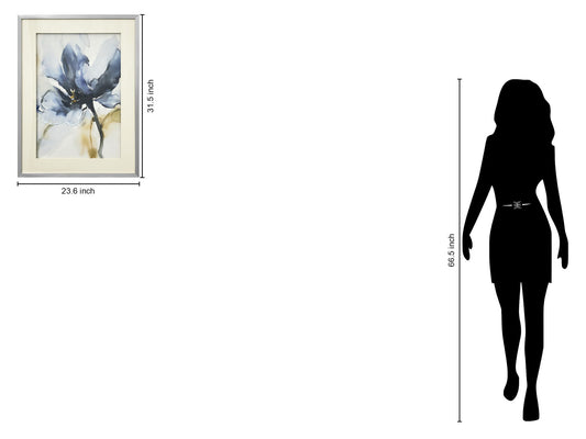 "Mystic Blossom" Hand-Embellished Framed Under Acrylic - Blue / Taupe / Silver