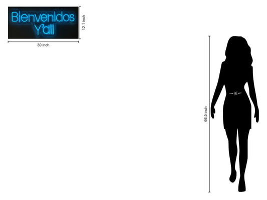 "Bienvenidos Y'All" LED Neon On Acrylic - Blue