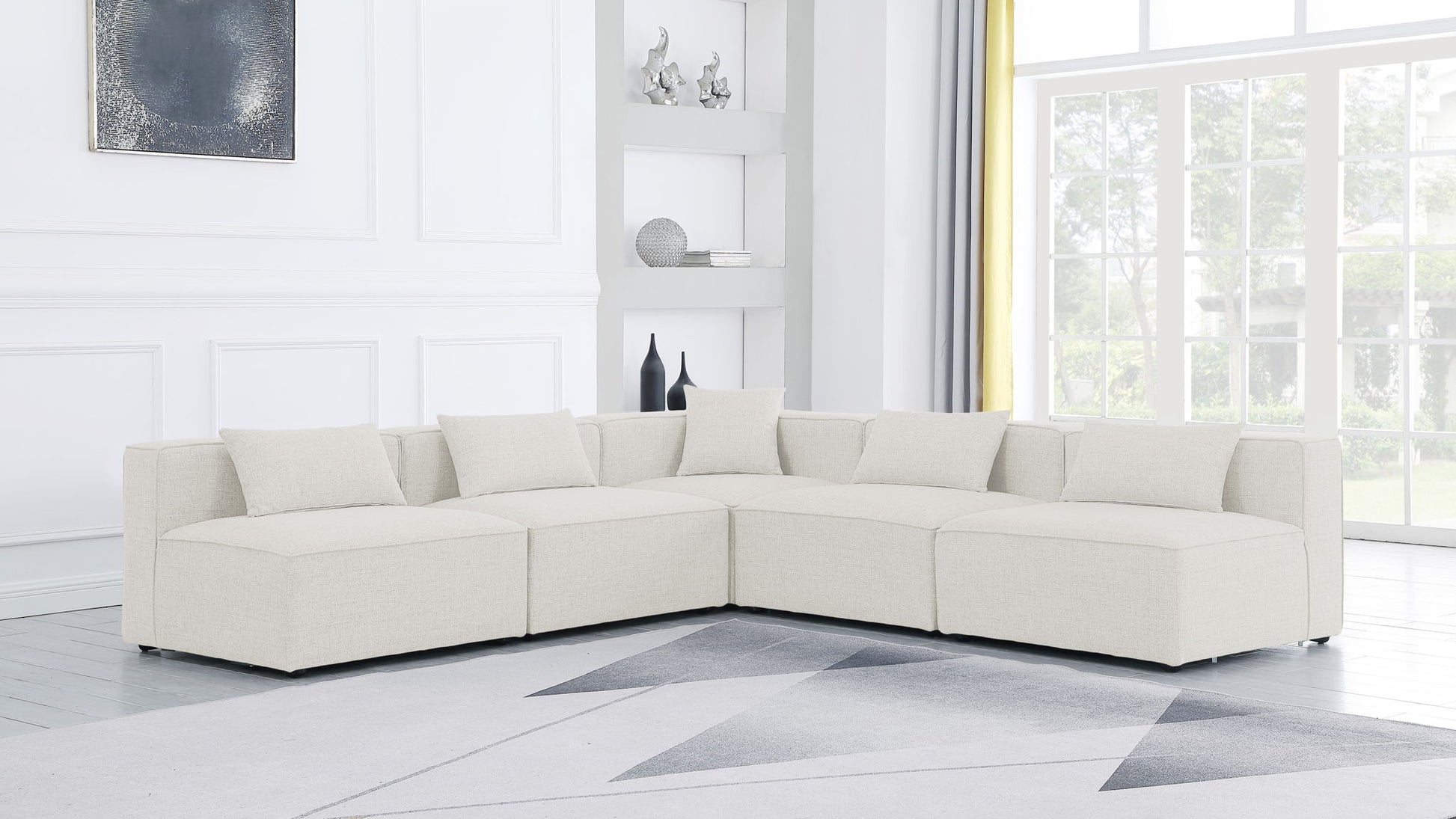 Cube - Linen 5 Piece Modular Corner Armless Sectional - Cream