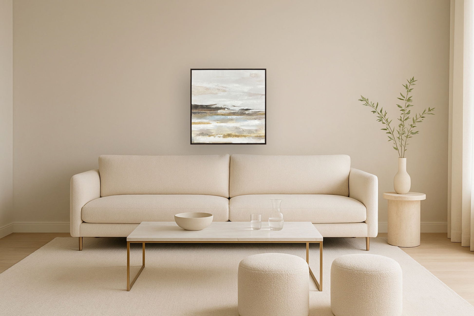 "Tranquil Horizon I" Hand-Embellished Canvas In Frame - Cream / Light Blue / Brown