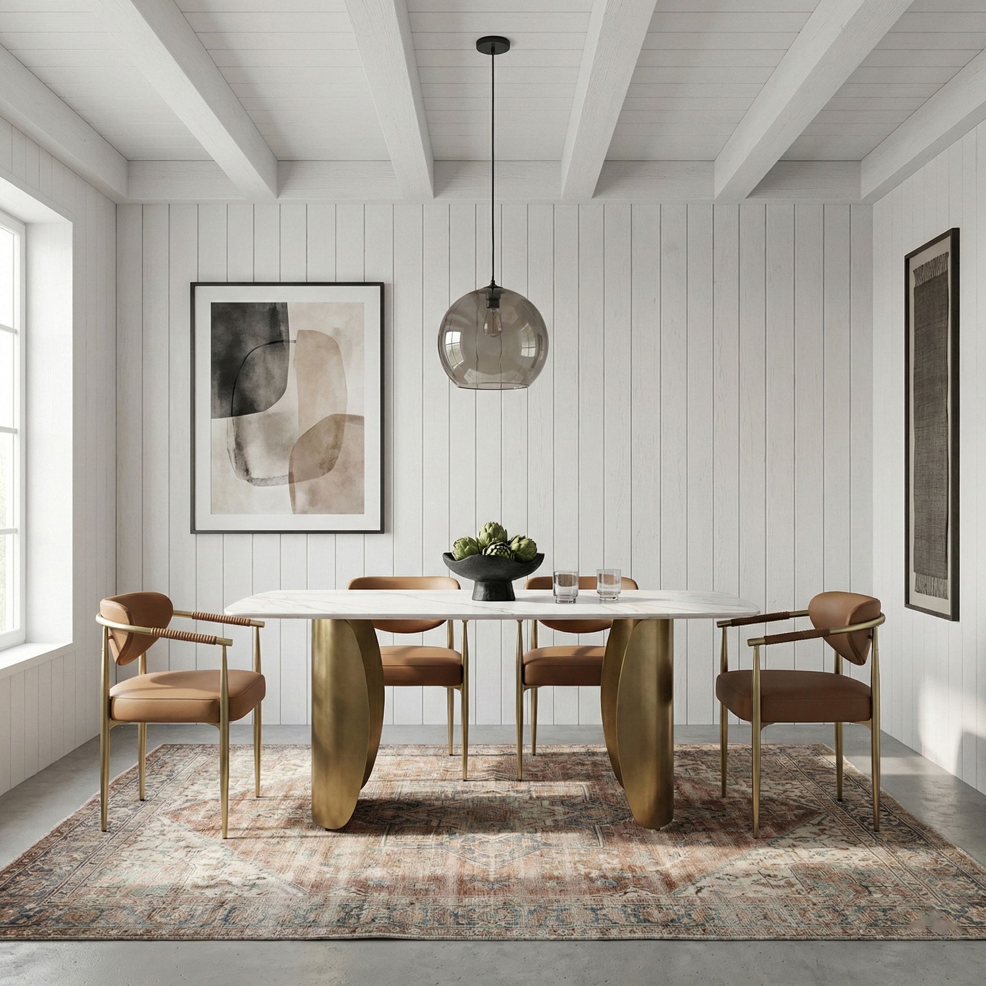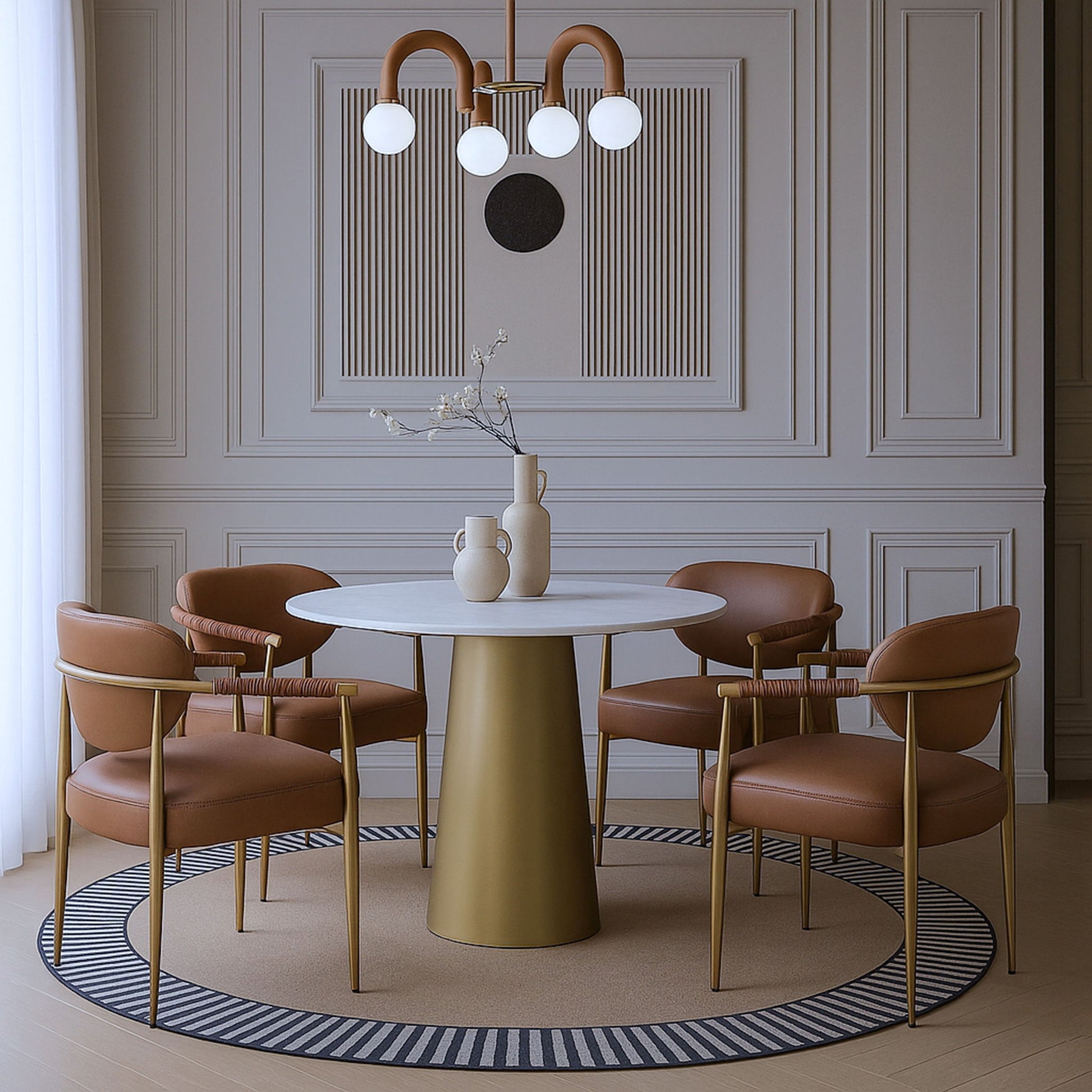 Virella - Vegan Leather Upholstered Dining Chair With Gold Base (Set of 2) - Cognac