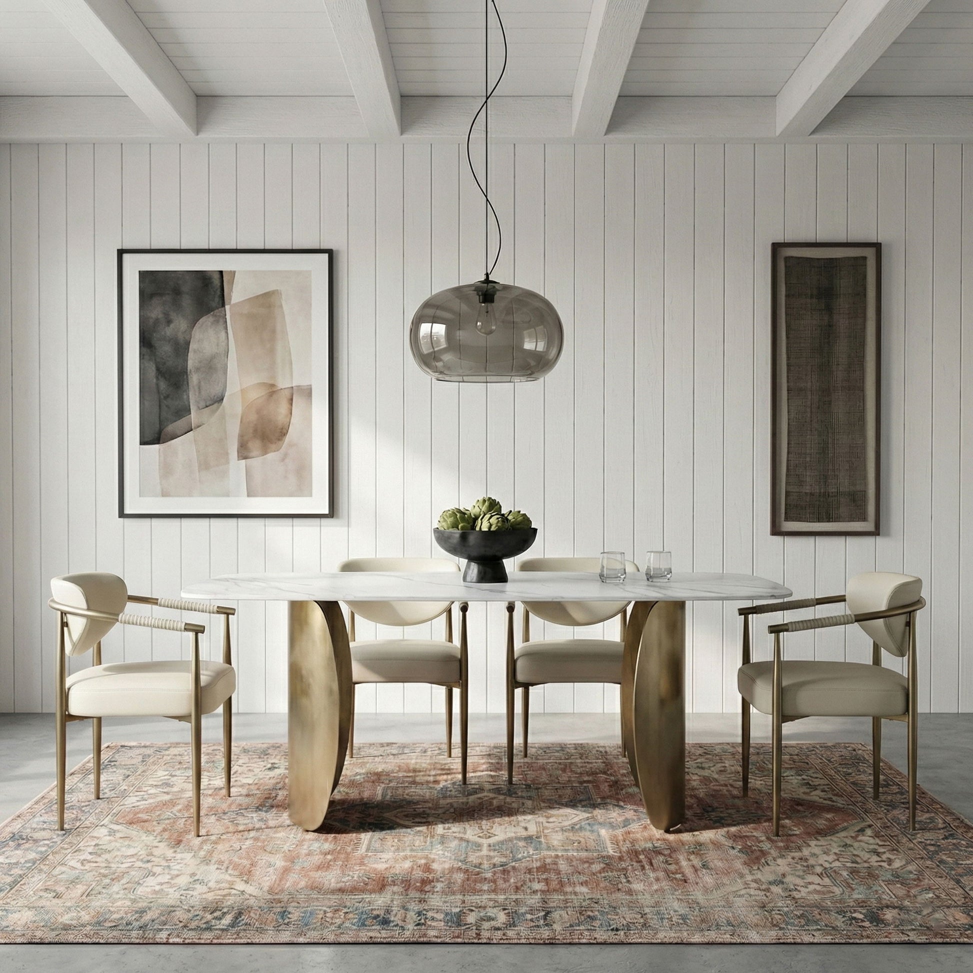 Virella - Vegan Leather Upholstered Dining Chair With Gold Base (Set of 2) - Cream