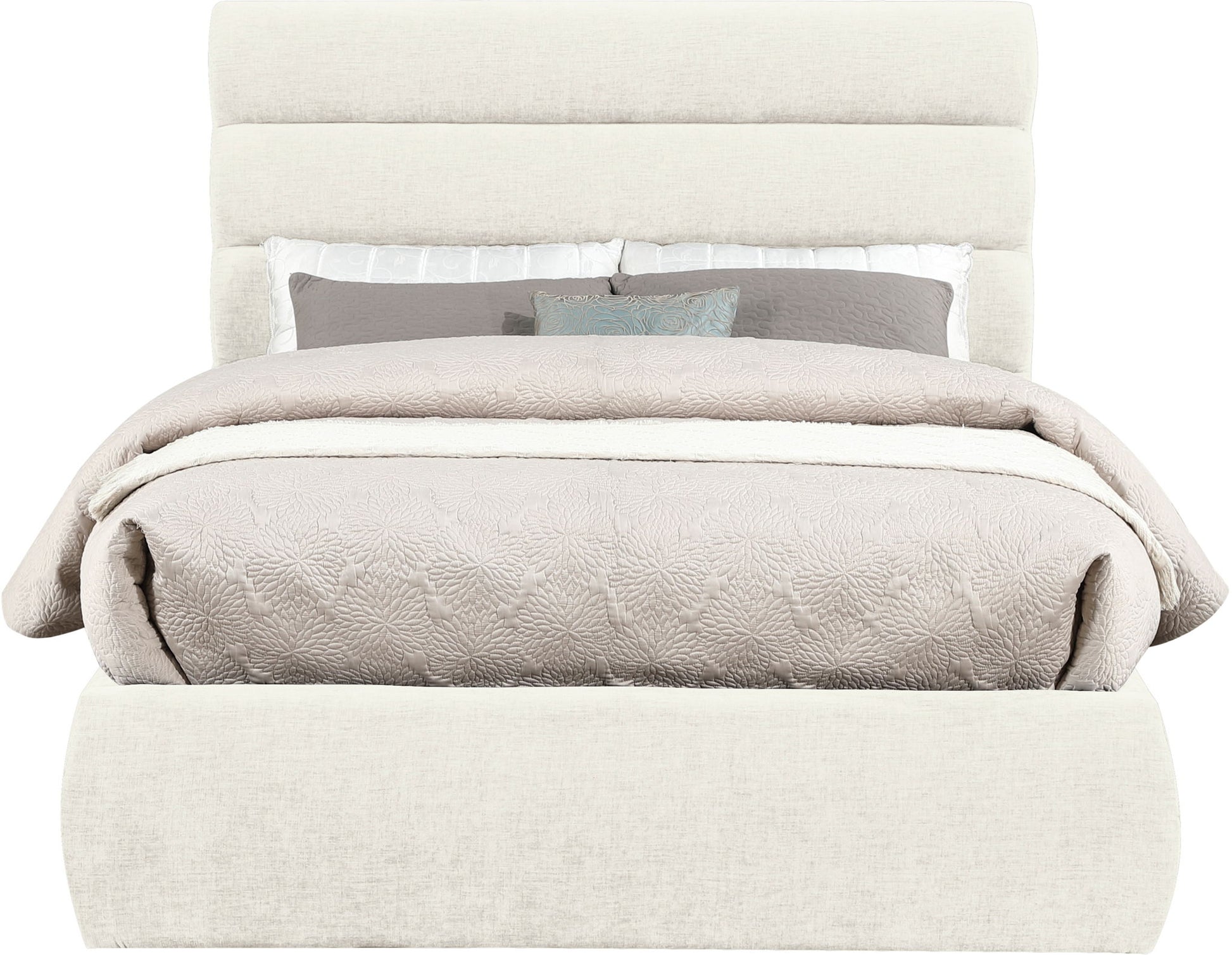 Adam - Chenille Fabric King Bed With 52" Headboard - Cream