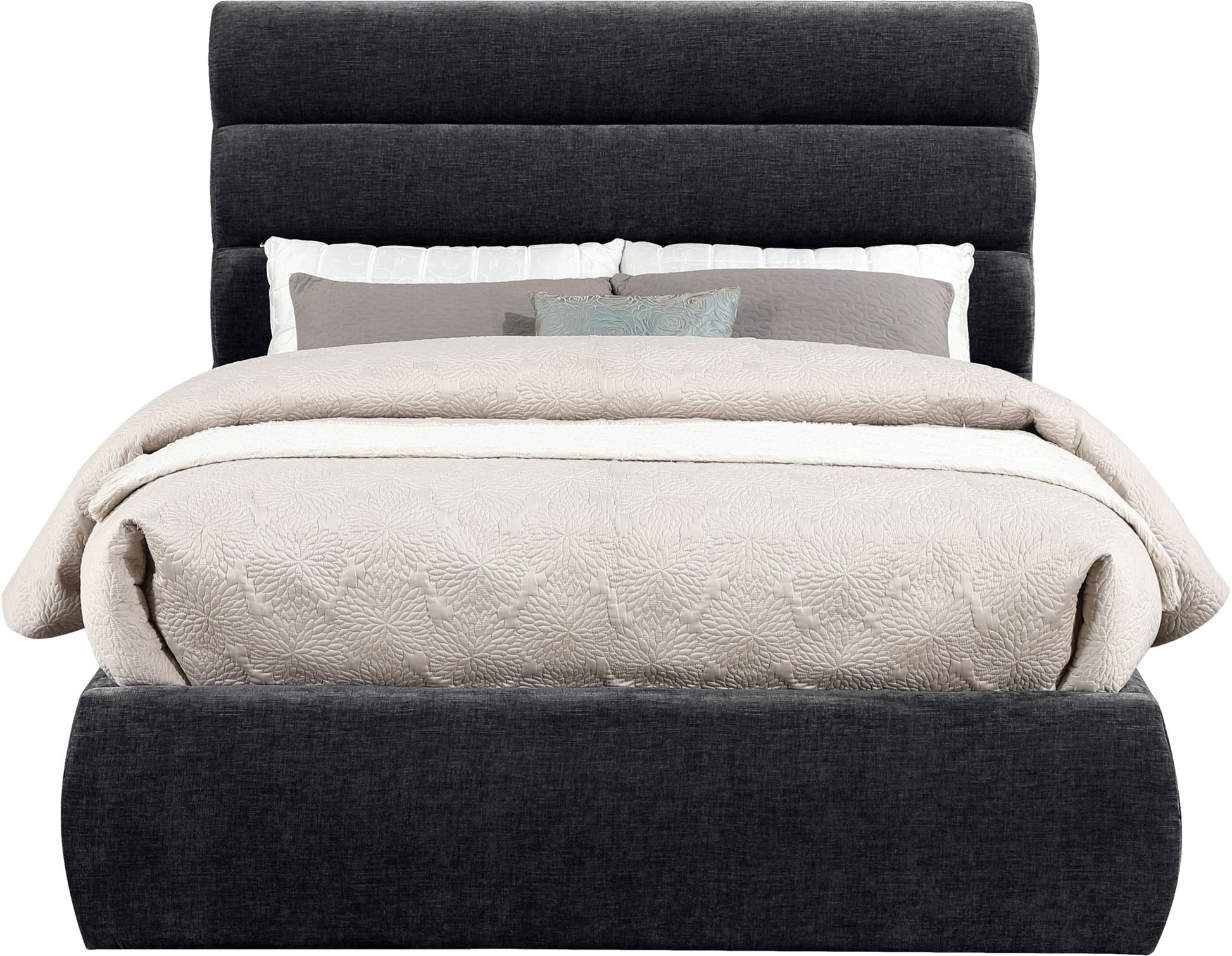 Adam - Chenille Fabric Queen Bed With 52" Headboard - Black