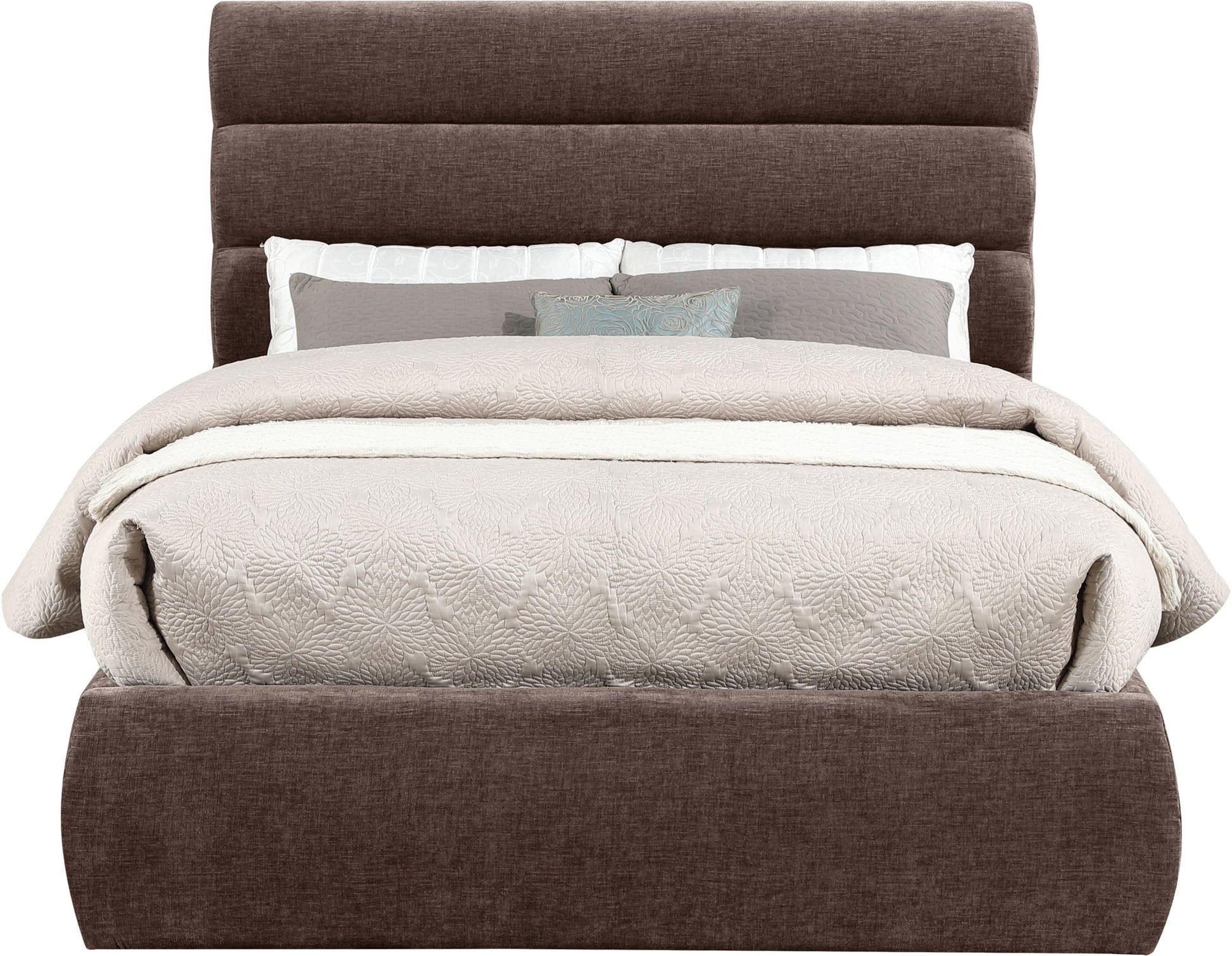 Adam - Chenille Fabric Queen Bed With 52" Headboard - Brown