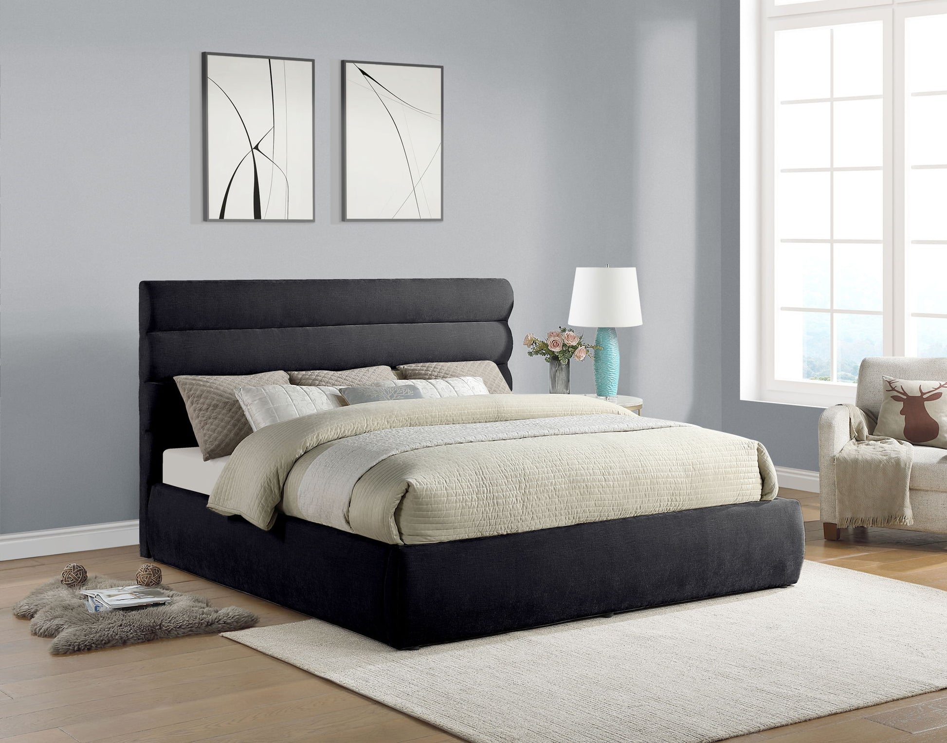 Adam - Chenille Fabric King Bed With 52" Headboard - Black