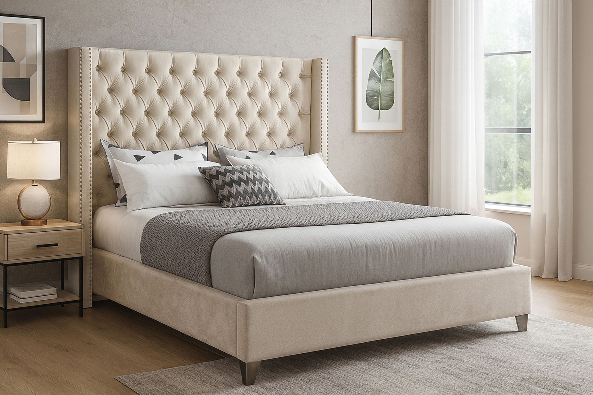 Aiden - King Bed - Cream