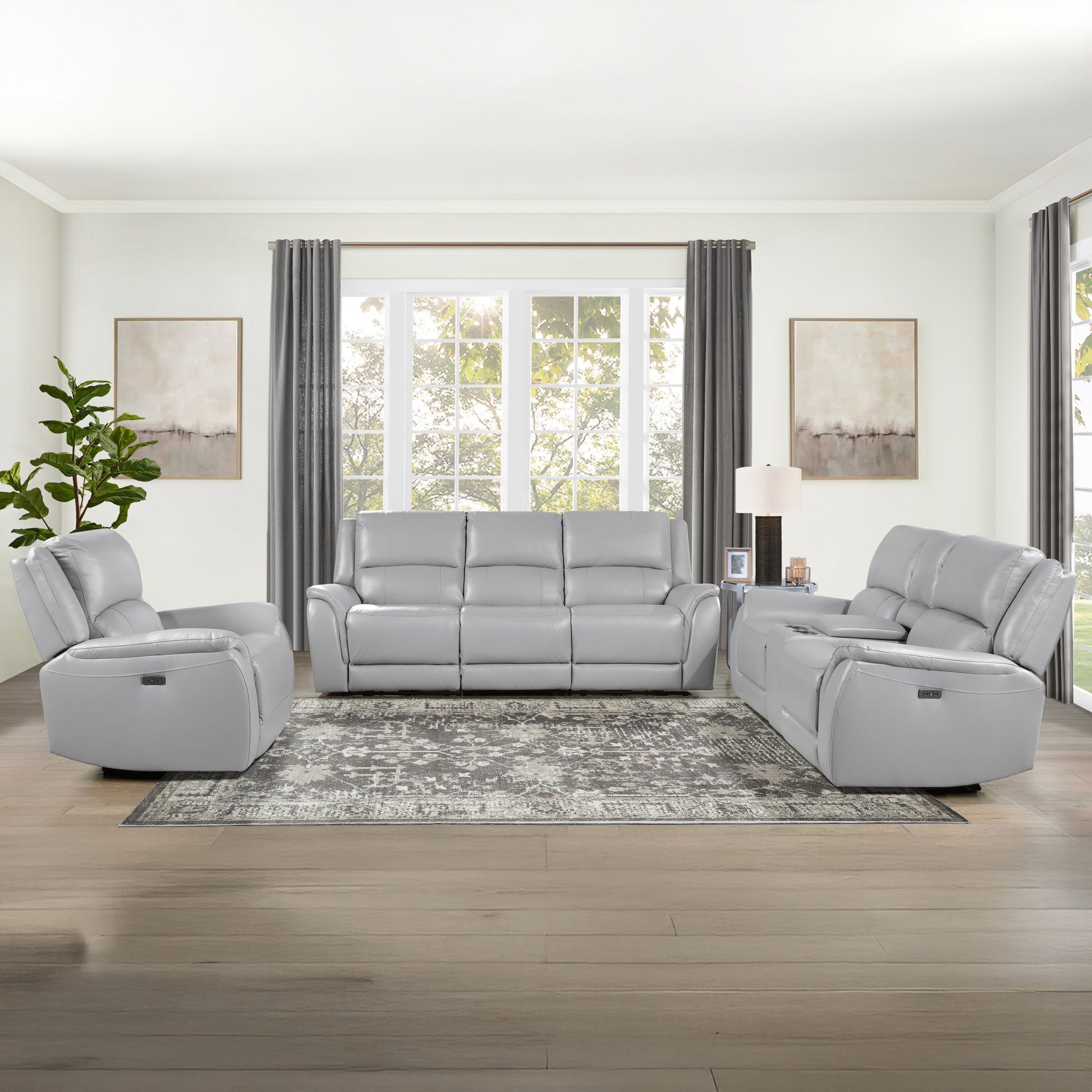 Alexandria - Power Leather Reclining Set - Gray