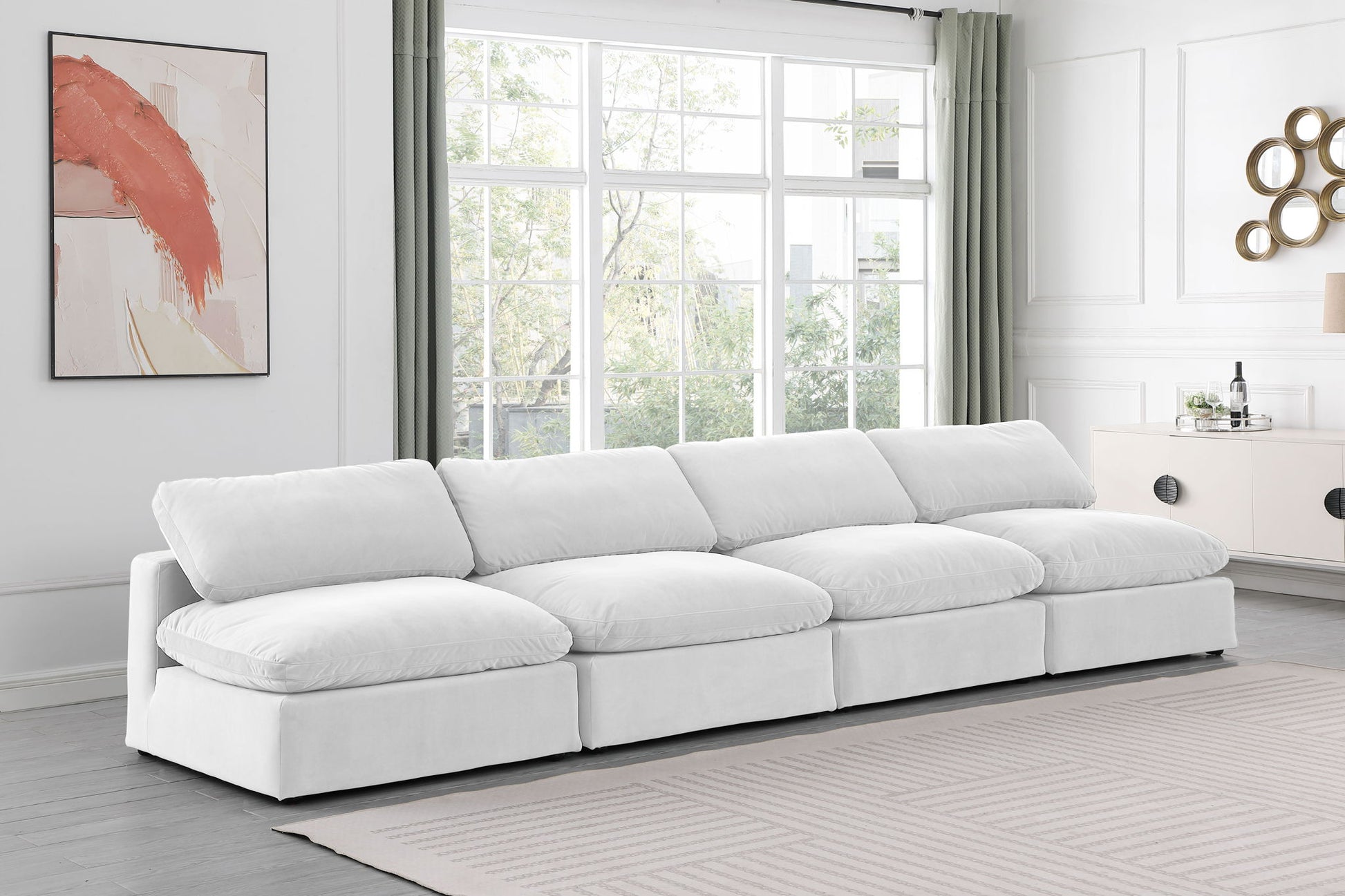 Comfy - Velvet Modular Armless Sofa 4 Pieces - White