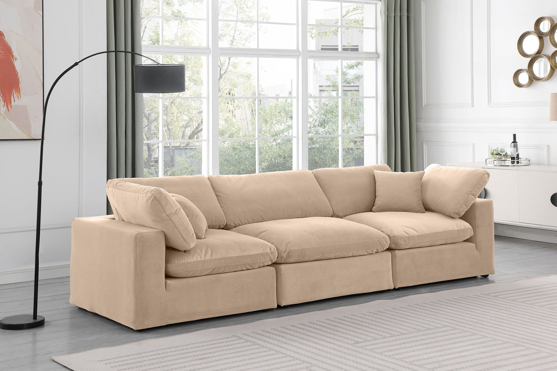 Comfy - Velvet Modular Sofa 3 Pieces - Beige