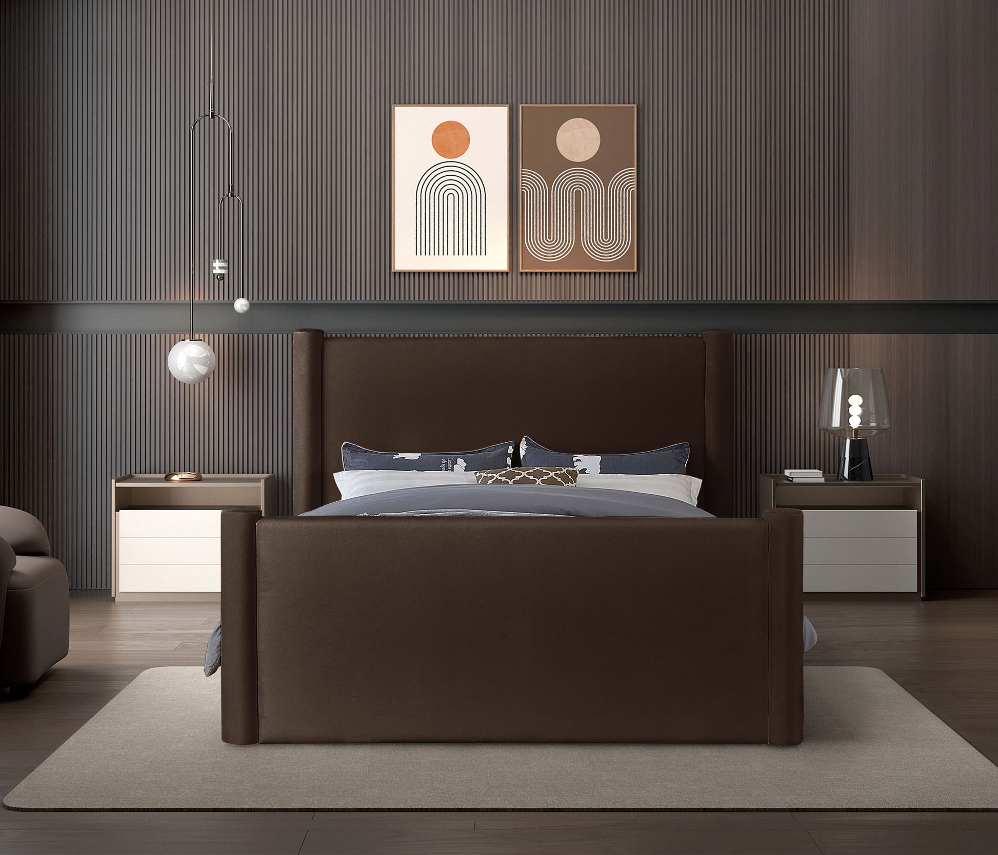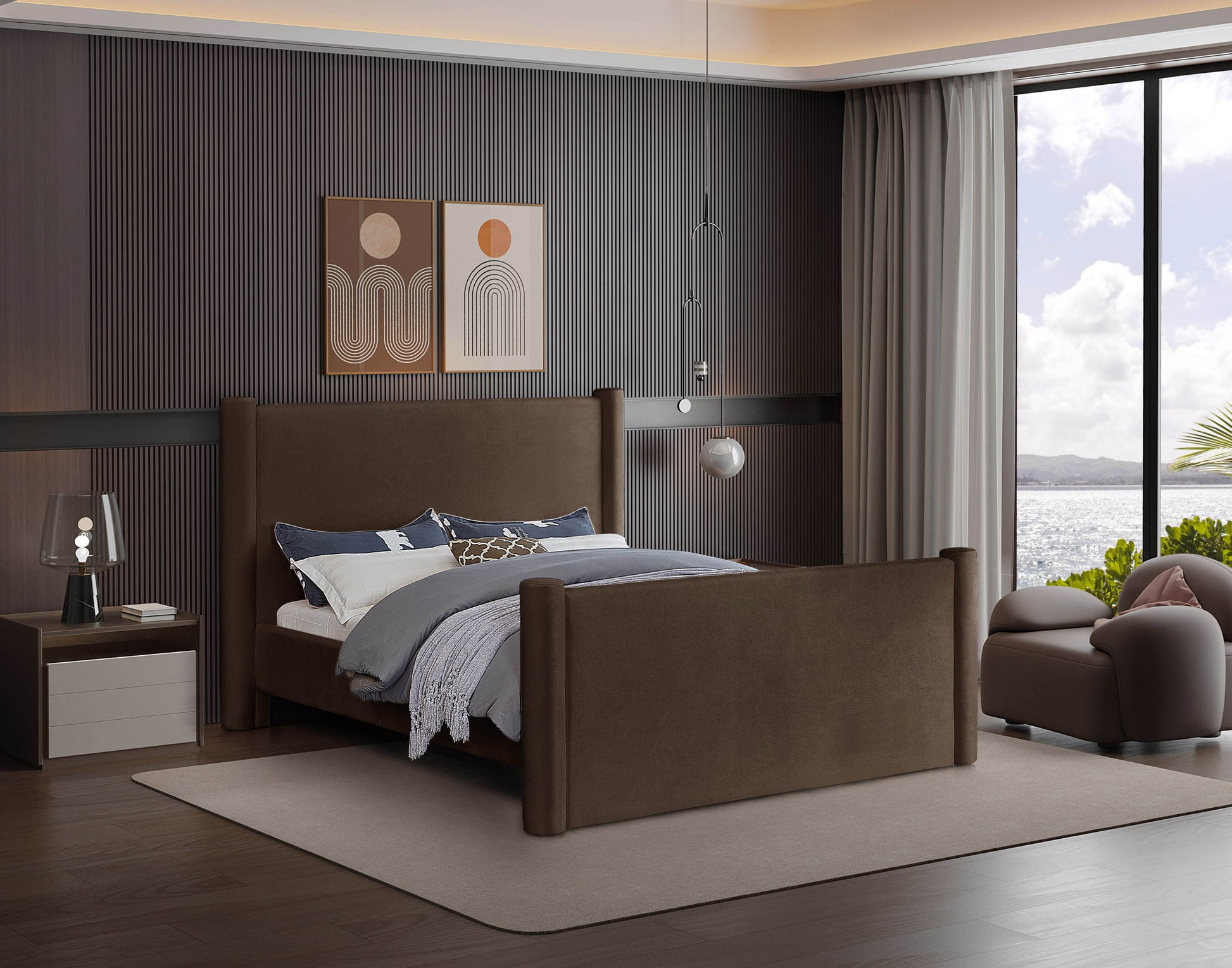 Elias - Velvet King Bed - Brown