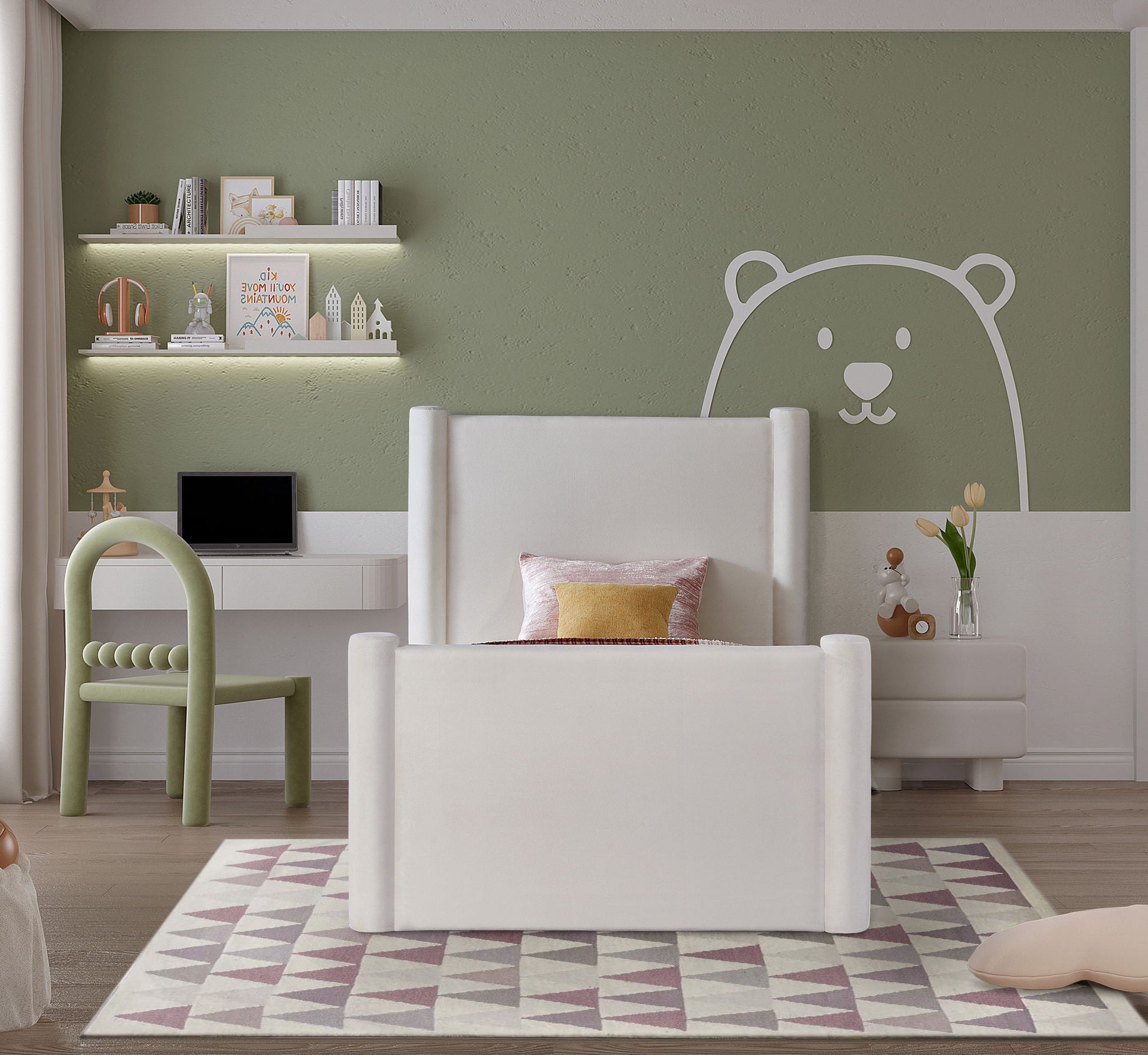 Elias - Velvet Twin Bed - Cream