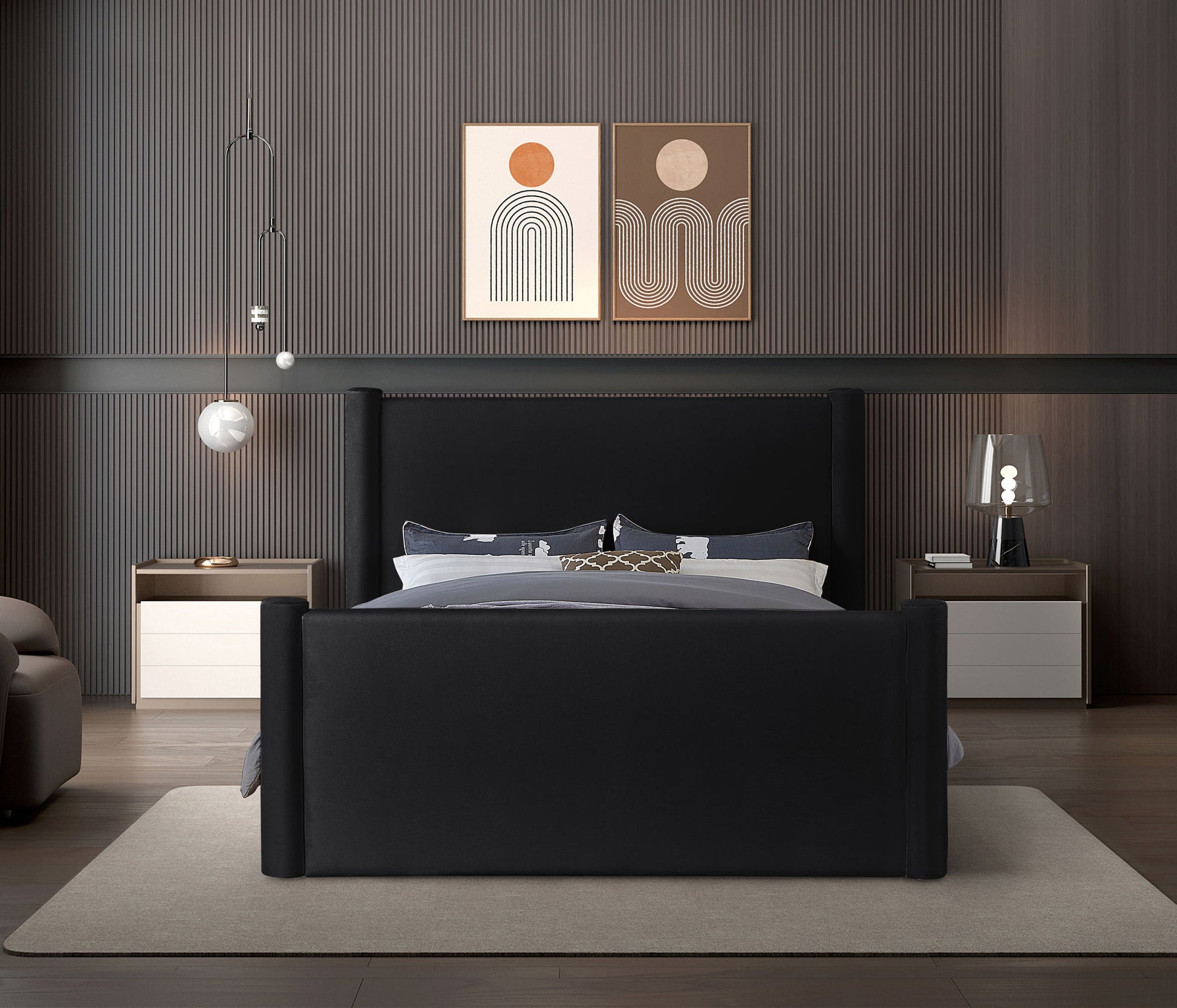 Elias - Velvet King Bed - Black