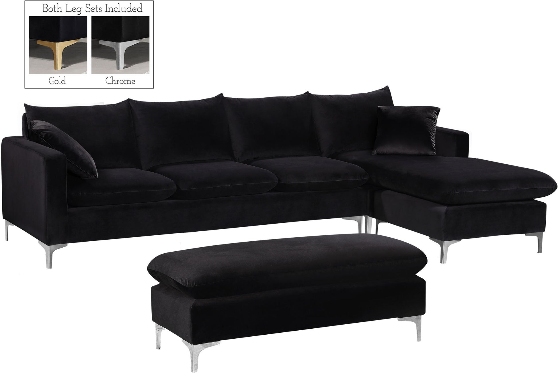Naomi - 2 Piece. Reversible Sectional - Black