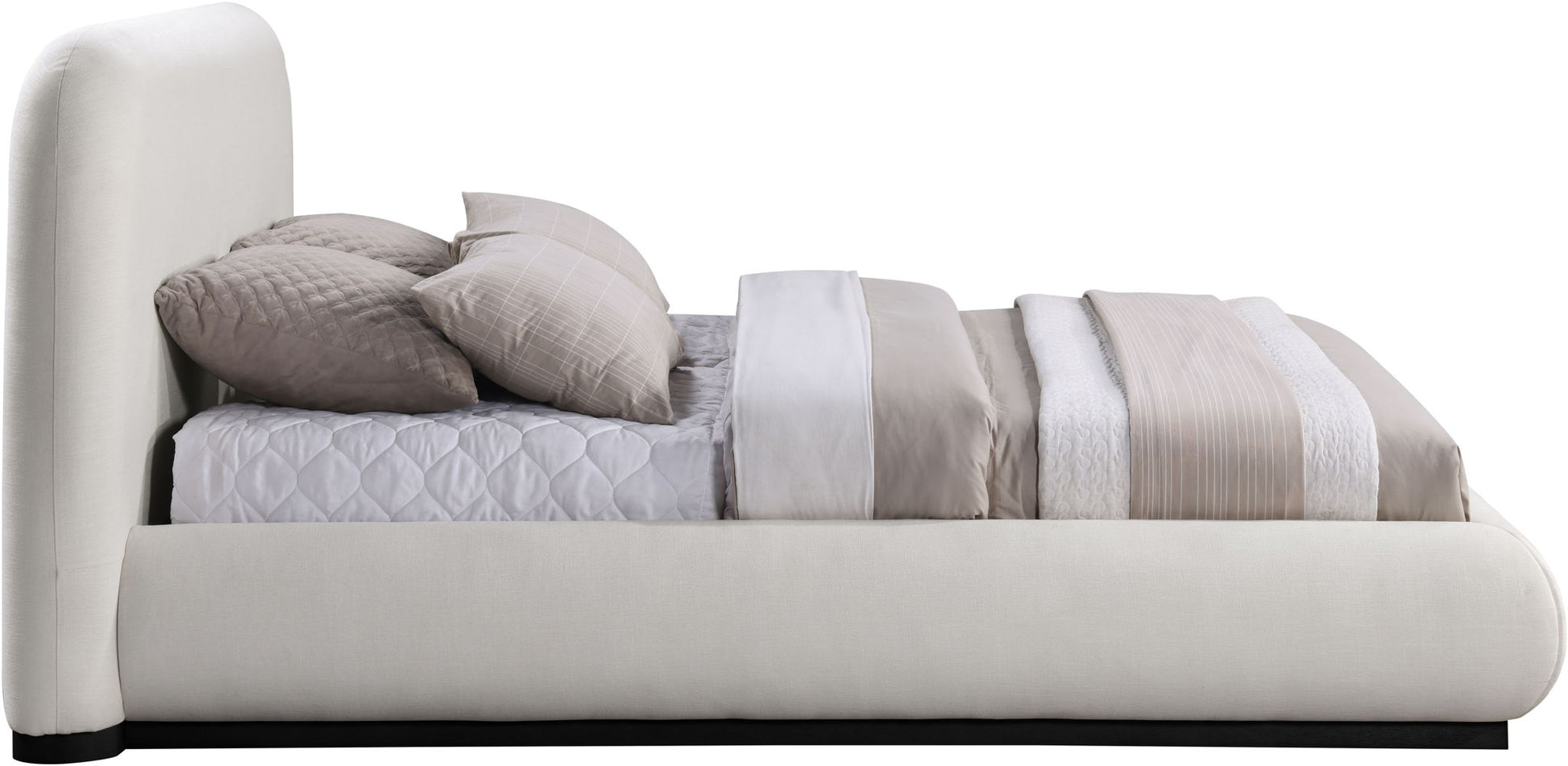 Vaughn - Linen King Bed With Black Base - Cream